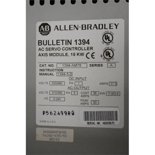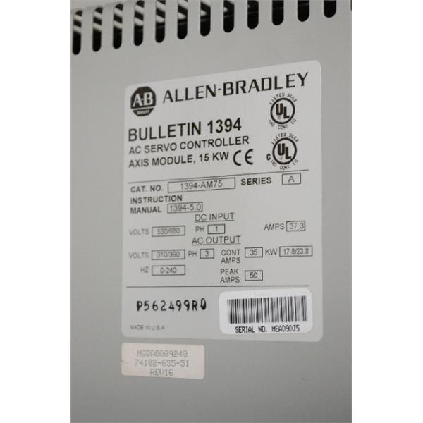 ALLEN BRADLEY 1394-AM75 AC SERVO CONTROLLER AXIS MODULE 15 KW